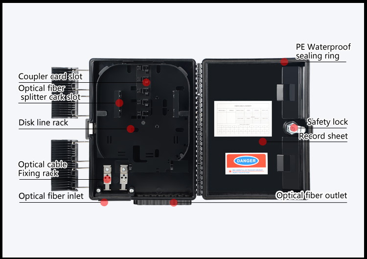 FDB-16E Optical Fiber Distribution Box 3 inlet midspan port uncut design 2 in 1 Black